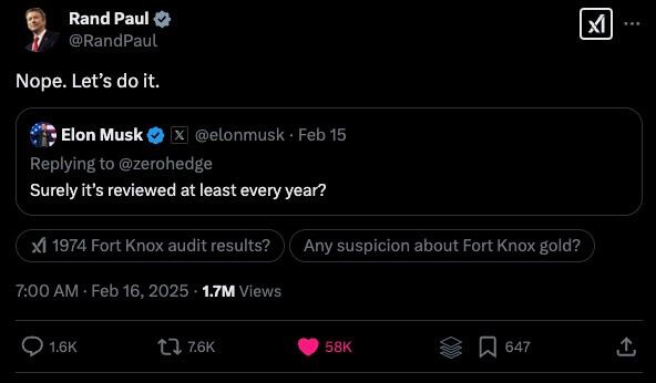 U.S. Senator Rand Paul joined the conversation, expressing support for a potential audit with a succinct “Nope. Let’s do it.” in response to Musk’s query about annual reviews.