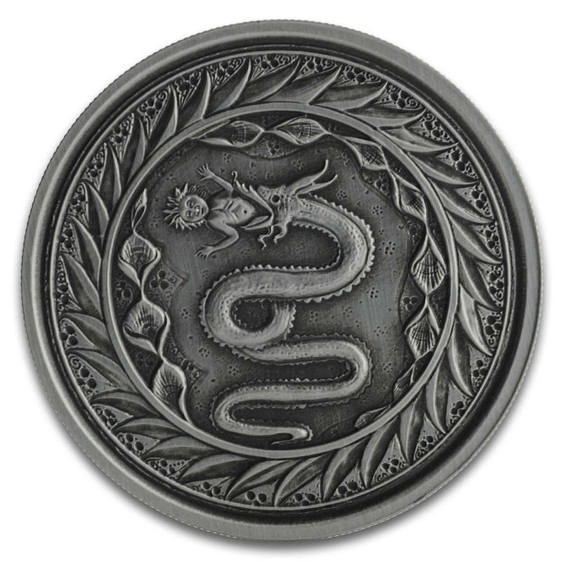 The Samoa Serpent of Milan Series plunges you into a dramatic tableau of myth and mortality. Struck in .999‑fine silver (with optional gold and colorized editions), the scene is rendered in high relief to accentuate the tension between human fragility and the beast’s overpowering strength.