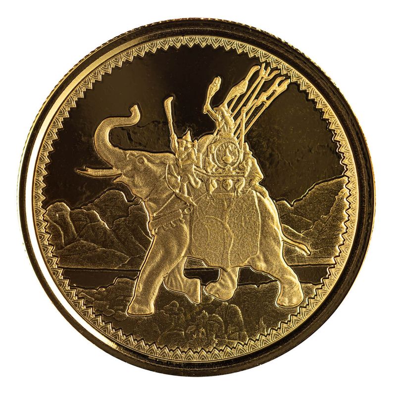Now, you can own your very own war elephant as part of our brand new program featuring these colossal creatures! This coin features a War Elephant riding into battle, with soldiers on its back crying out and spears shooting into to sky. On the obverse is the Gibraltar Coat of Arms. It's the perfect way to commemorate these magnificent animals and their role in history. So don't wait - order your coin today!