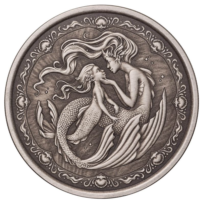 Dive into the enchanting world of mermaids with our stunning 1 troy oz 999 fine silver antique coin, featuring a heartwarming portrayal of a Mermaid Mother and Daughter. Celebrating the timeless bond of motherhood and family, this exquisitely crafted coin captures the beauty and grace of these mythical creatures. Each detail is meticulously rendered, from the intricate scales to the flowing tresses, evoking a sense of wonder and magic. Whether as a cherished addition to your collection or a thoughtful gift for a loved one, this silver coin is a tribute to the enduring power of love and connection. Embrace the spirit of the sea and treasure the special moments shared between mother and child with this captivating coin.