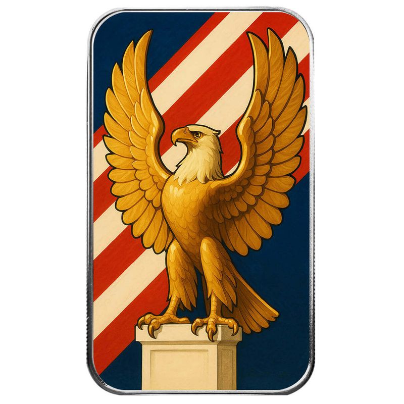 This is a celebration of American strength and national pride. With a composition that radiates monument-like grandeur, this bar stands tall in any patriotic collection, honoring the eagle as the eternal symbol of freedom.