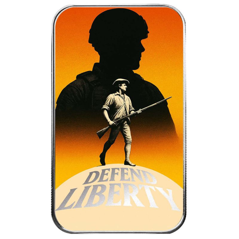 From the first shots fired at Lexington and Concord to the frontlines of modern global conflict, the spirit of the American soldier has stood firm, unyielding in the defense of liberty. The 2025 Defend Liberty 1 oz Silver Color Bar from Scottsdale Mint pays tribute to this sacred legacy, uniting the resolve of the past with the vigilance of the present.