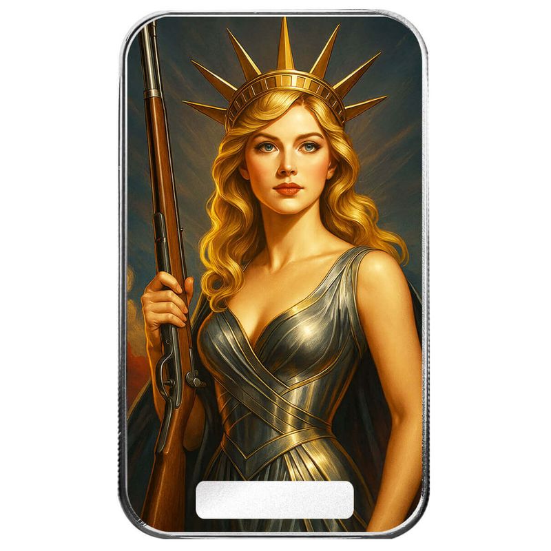 This bar transforms the iconic symbol into a modern warrior of freedom, armed and unyielding. It’s perfect for those who see liberty not just as a gift, but as something worth defending at any cost.