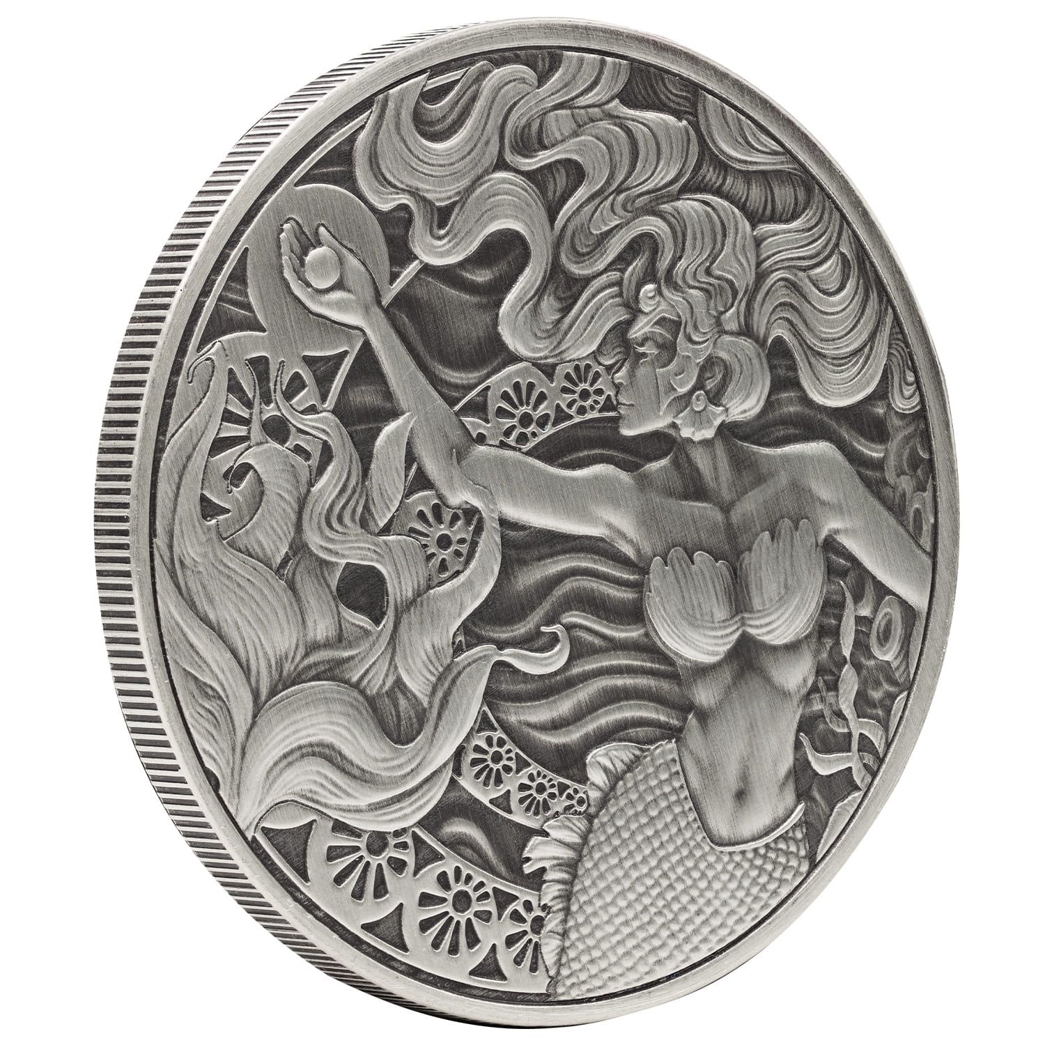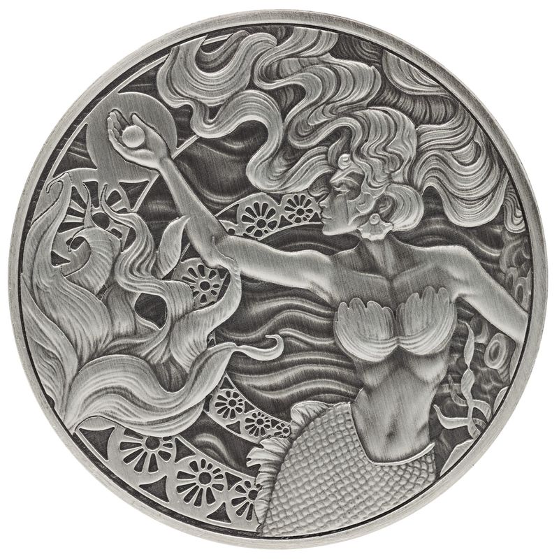 On the reverse, the enchanting mermaid design radiates with depth and texture thanks to the antiqued strike, highlighting oceanic details from swirling currents to coral patterns. The obverse bears the official Samoa coat of arms, certifying its authenticity and status as government-backed legal tender. This antique silver coin is not only a tribute to ocean mythology but also a tangible investment in precious metals with lasting global value.