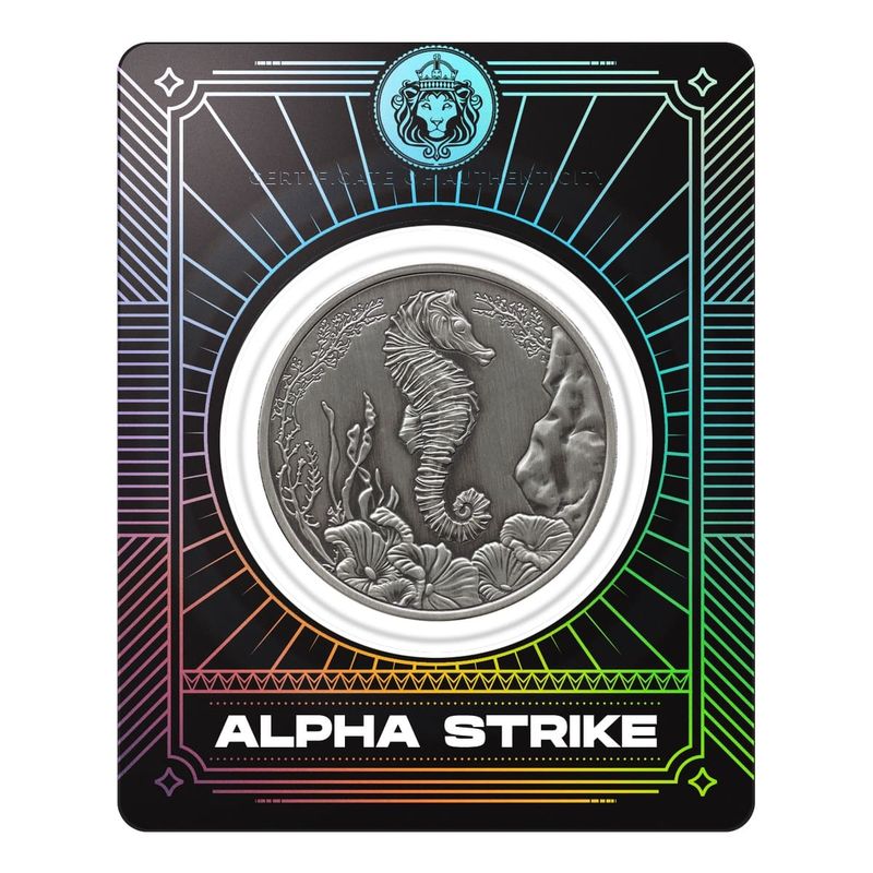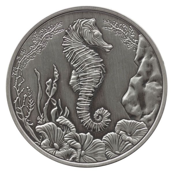 Each coin arrives housed in a capsule mounted on chipboard packaging, offering protection, display presence, and a ready-to-show presentation style. Collectors who prioritize rarity, craftsmanship, and advanced finish techniques will immediately recognize the appeal of this ultra-low-mintage edition. Its hand-antiqued character pairs beautifully with the underwater seahorse theme, giving the artwork a timeworn, museum-like quality that differentiates it from standard silver releases.
