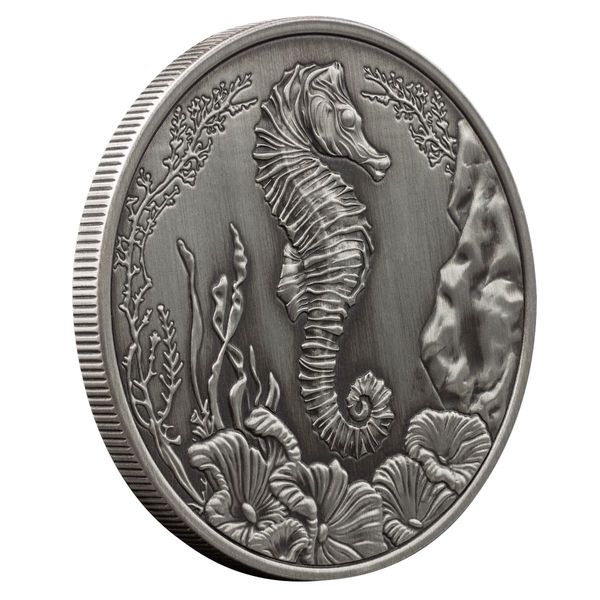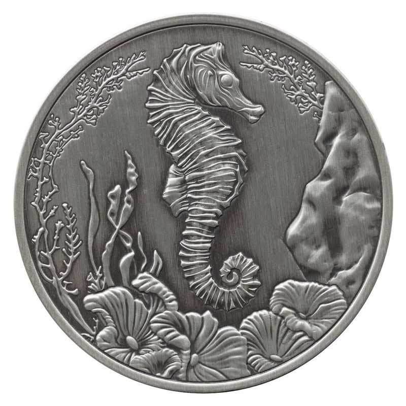Discover a bold new expression of the beloved seahorse motif with the 2025 Samoa Seahorse 1 oz Silver Coin – Antiqued Finish, crafted in .999 fine silver and designed to showcase depth, texture, and old-world character. This special-edition release transforms the underwater artistry of the series through its hand-antiqued aesthetic, highlighting every curve of the seahorse and every detail in the surrounding coral. Collectors will appreciate how the antiquing enhances contrast and elevates the coin’s visual storytelling, making it a standout piece among silver coins themed around marine life.