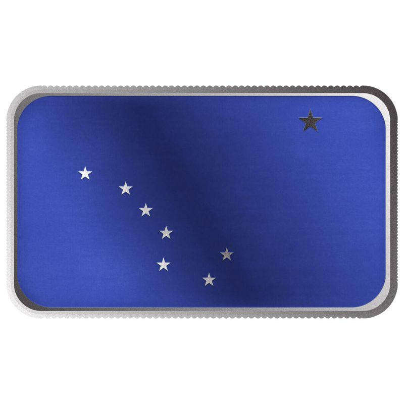 The flag of Alaska, known as the "Alaskan State Flag," features a simple yet meaningful design. It consists of a dark blue field representing the sky and the forget-me-not flower, Alaska's state flower. On this field, there are eight gold stars forming the Big Dipper constellation, which symbolizes a bear, an animal indigenous to Alaska, and a larger star representing the North Star, symbolizing Alaska's northern location. This design was created by a thirteen-year-old, Benny Benson, and was officially adopted in 1927. The flag embodies the natural beauty and frontier spirit of Alaska.
