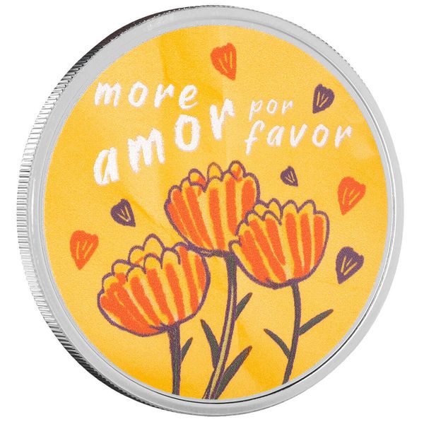 The More Amor Por Favor 1 oz Silver Color Round radiates warmth and joy with its vibrant yellow background, symbolizing happiness and affection. Three beautifully detailed flowers bloom at the center, their petals full of life and color, while playful hearts float gently in the sky above. The phrase “More Amor Por Favor” is elegantly inscribed, blending charm and a heartfelt request for more love in the world. This bright and uplifting design makes it a perfect keepsake or gift, spreading a message of kindness, warmth, and endless love.