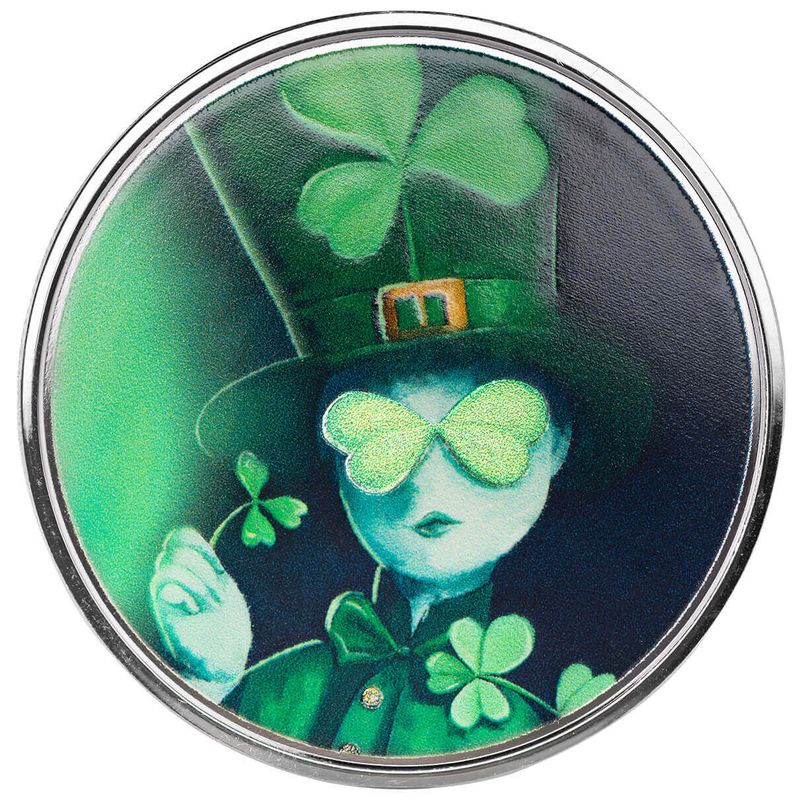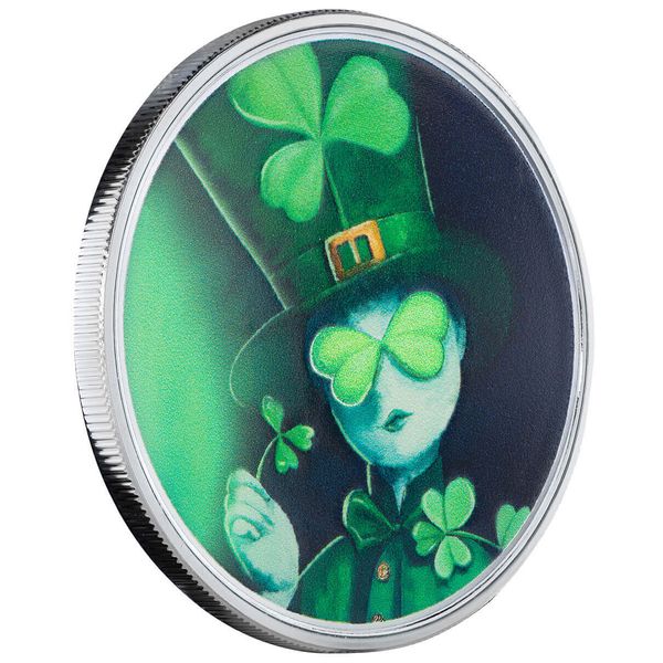 The bright, colorful detailing adds a touch of liveliness to this silver round, making it stand out as both a fun and meaningful piece. The lucky shamrock represents good fortune, while the artist’s creative flair gives the design a unique, almost mischievous energy. It’s a perfect blend of tradition and modern whimsy, making it an ideal gift or collectible for those who appreciate St. Patrick's Day celebrations with a bit of humor and charm.