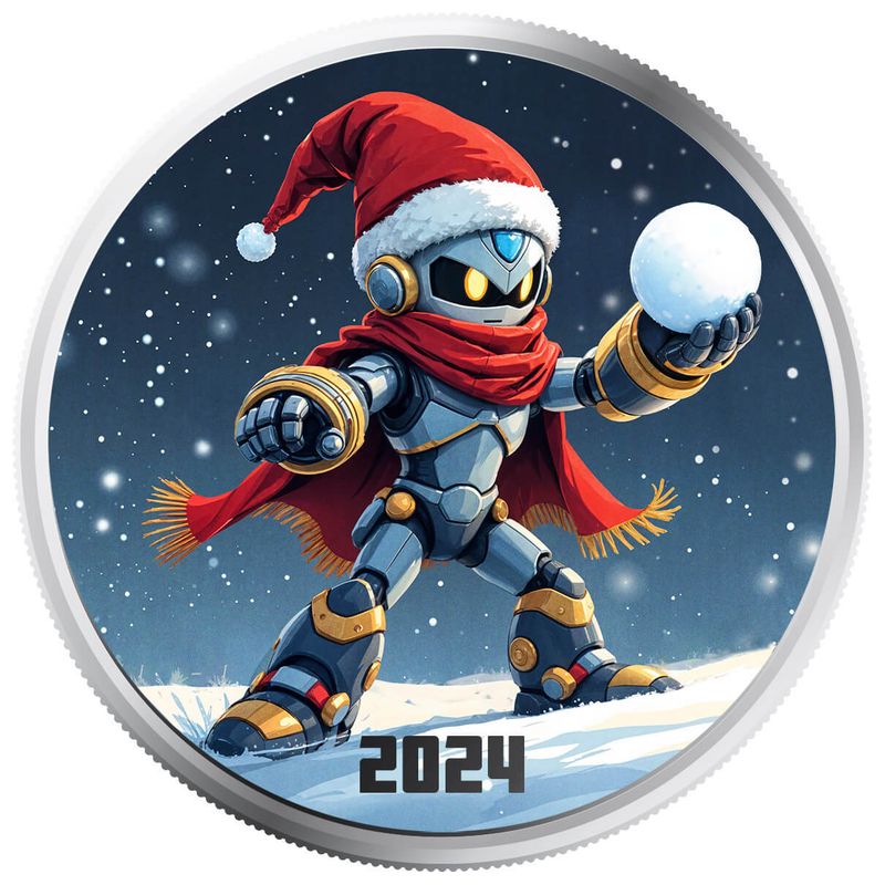 Crafted in 1 oz of fine silver, this round combines holiday magic with imaginative detail, making it a perfect gift or collectible for kids, tech enthusiasts, and anyone with a playful spirit. Embrace the season with this fun-loving robot as he gears up for a snowball showdown!