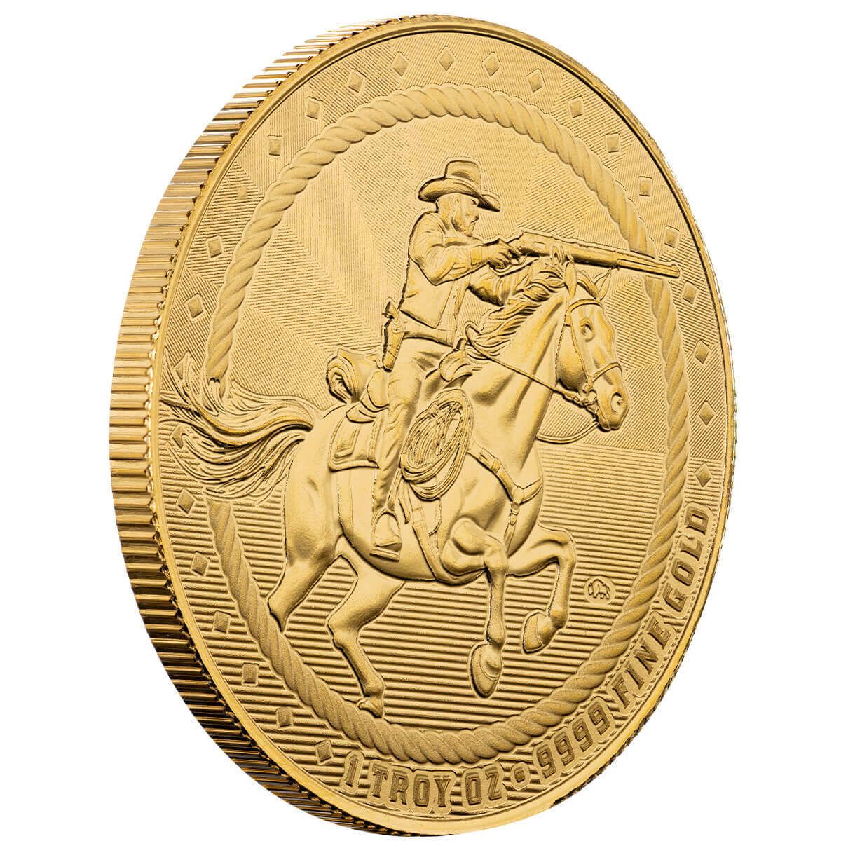 Now featuring the bold Cowboy Rifleman design, this round captures the rugged spirit of the American West, depicting a fearless cowboy riding his horse, rifle in hand. It’s not just gold—it’s a symbol of resilience, independence, and frontier spirit.