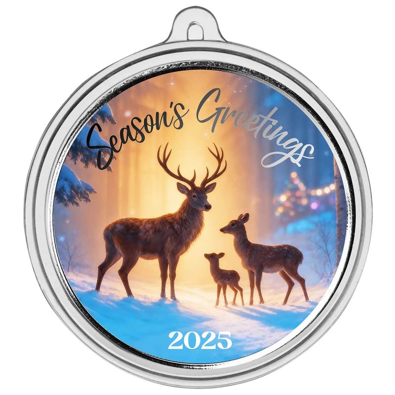 Presented in a festive ornament-style capsule, the Winter Deer Family Round is ready to hang on your Christmas tree, display on a mantel, or gift to loved ones. Its brilliant finish and durable presentation make it a keepsake that will shine brightly for generations, unlike ordinary ornaments that fade with time.